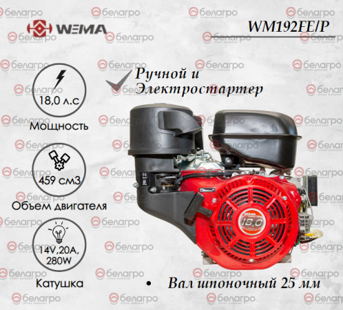 Двигатель бензиновый WEIMA WM192FE/P (18 л.с.) с эл.стартером (14v,20А,280W)