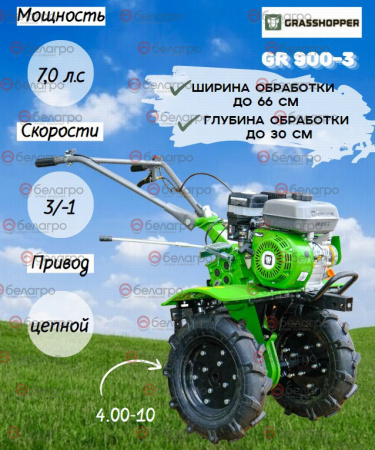 Мотокультиватор GRASSHOPPER GR 900-3 (4.00-10) (7,0 л.с.) (пониж. передача)