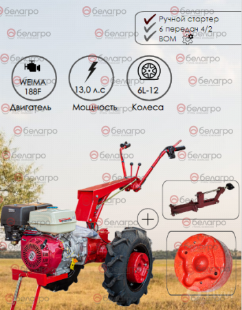 Мотоблок Беларус-012WM (дв.WEIMA 13л.с.)+СЦ-00010 сцепка универсальная