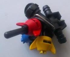 Данная можель снабжена 3-х позиционными форсунками Итальянского производства. Головки оборудованы мембранными запорными клапанами, предотвращающими вытекание жидкости из распылителей при закрытом клапане управления. Красный СТ 110.04 Синий СТ 110.03 Желтые СТ 110.02
