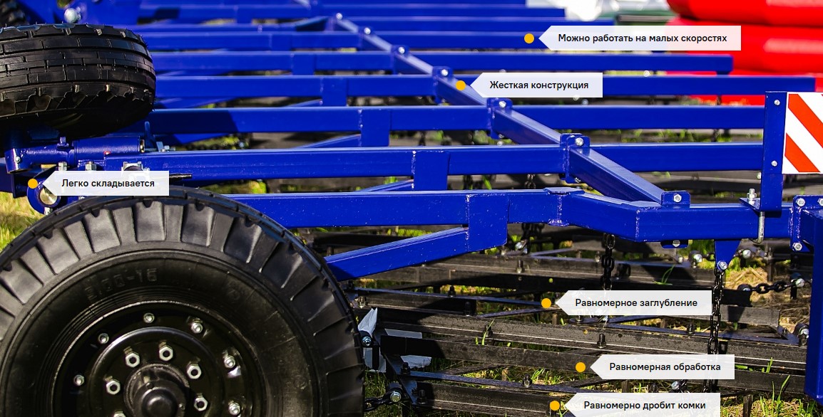 шахматное расположение борон обеспечивает 100% перекрытие и как итог равномерную обработку почвы