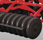 Дисковые прикатывающие катки собраны в четыре секции. Секции с помощью вилок присоединяются шарнирно к раме сеялки. Такое присоединение секций катков к раме дает возможность каткам копировать рельеф поля.