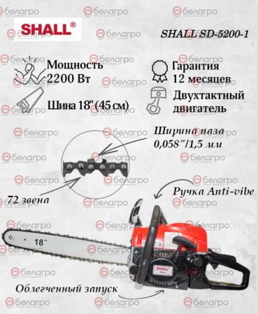 Бензопила SHALL SD-5200-1 шина 18" (2,2 кВт)