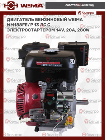 Двигатель бензиновый WEIMA WM188FE/P (13 л.с.) с эл.стартером (14v,20А,280W) (фильтр в мас. ванне)