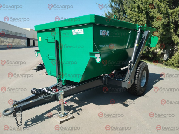 Полуприцеп тракторный самосвальный ПТСЖ-6,5 предназначен для перевозки и выгрузки назад любых жидких, полужидких и сыпучих сельскохозяйственных и строительных грузов по дорогам общей сети и в полевых условиях. Полуприцеп является универсальным, всесезонным транспортным средством и кроме традиционых сельскохозяйственных грузов может транспортировать и разгружать жидкие и полужидкие удобрения, строительные растворы и асфальтобетонные смеси. Полуприцеп агрегатируется с колёсными тракторами тягового класса 1,4т...2.0тс.